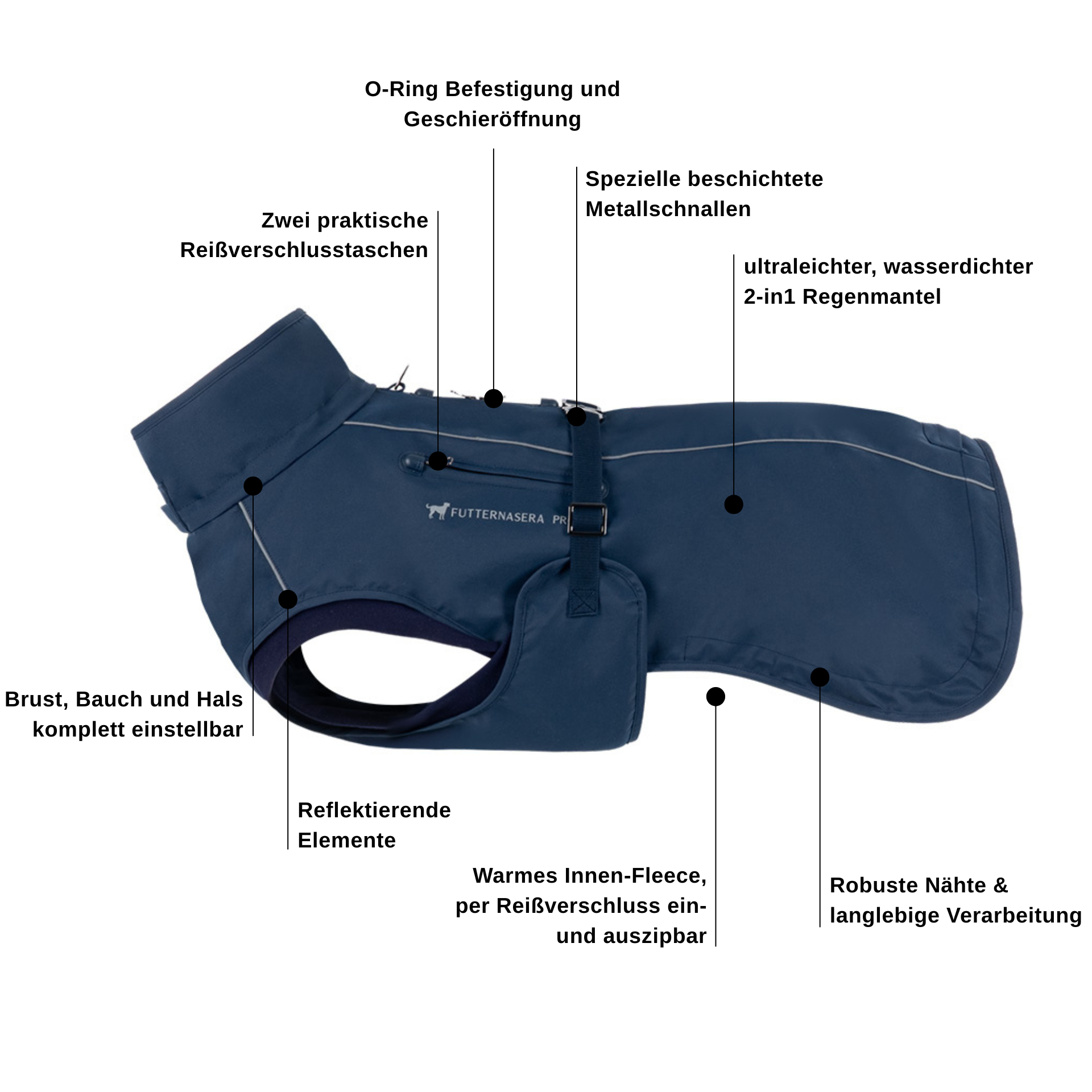 Der erste 2-in-1 Premium Hundemantel, der vor Regen, Wind und eisige Temperaturen schützt.